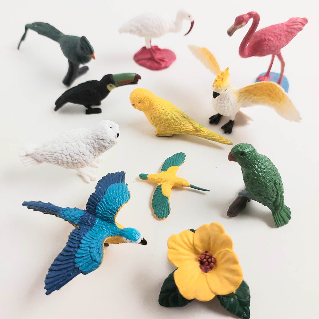 Meet 10 exotic birds from around the world! Refill your diggity buckets or create your own sensory bin. Great for party giveaways, prizes, cake toppers, party decors, stocking fillers, and school project dioramas.