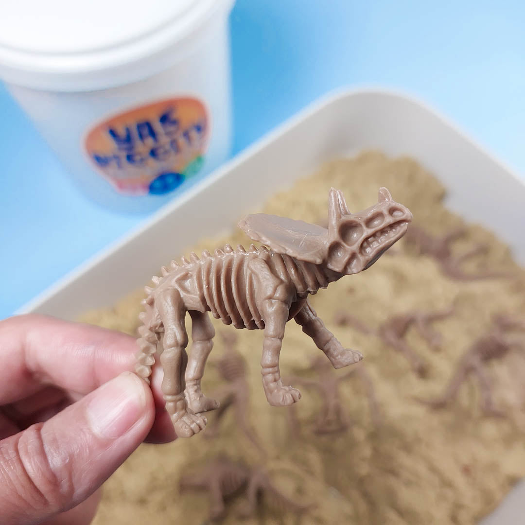 Excavate through a bucket of play sand to unearth 12 awesome dinosaur fossils. Spend hours digging around making unique discoveries beneath the sand. Our Dino Fossil Diggity Bucket is the best gift for children interested in Palaeontology.