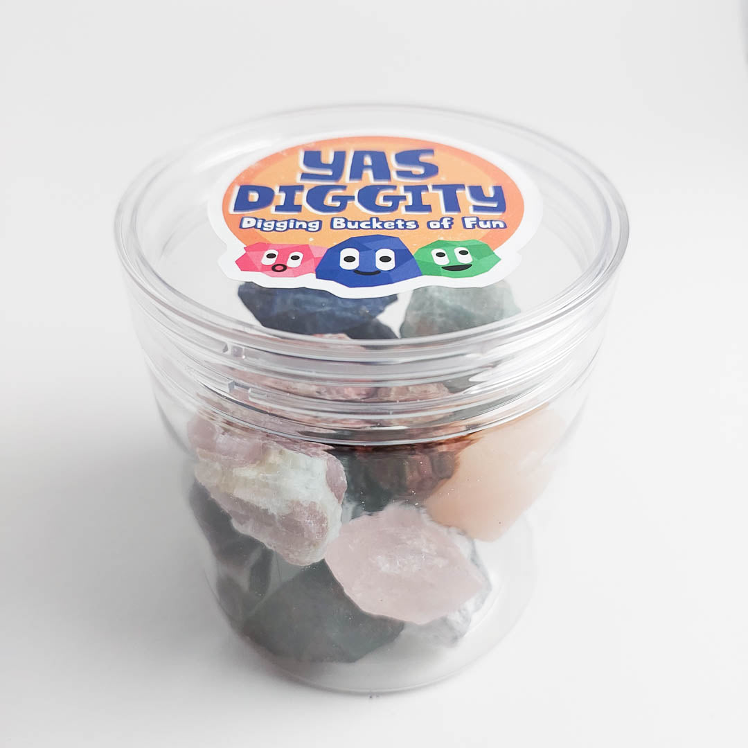 Discover 15 different rocks and minerals! Get random rocks for every Rock Refill Jar you purchase. Also included is a chart for you to identify the precious stones discovered. The rocks are placed in a re-usable hard plastic canister jar, making it portable and convenient! Create your own rock collection and show it off to your family and friends.
